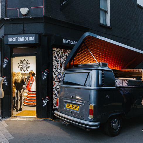 Alongside the installation of Linea’s mural, was the opening of the pop up store for new brand West Carolina created by fashion designer Ana Carolina, herself a finalist of the Bright Young Things competition. The first collection for West Carolina, designed for the creative self made woman, titled ‘Wavy’, is inspired by colour and movement, and made to enhance the wearer’s passion for art and expression.